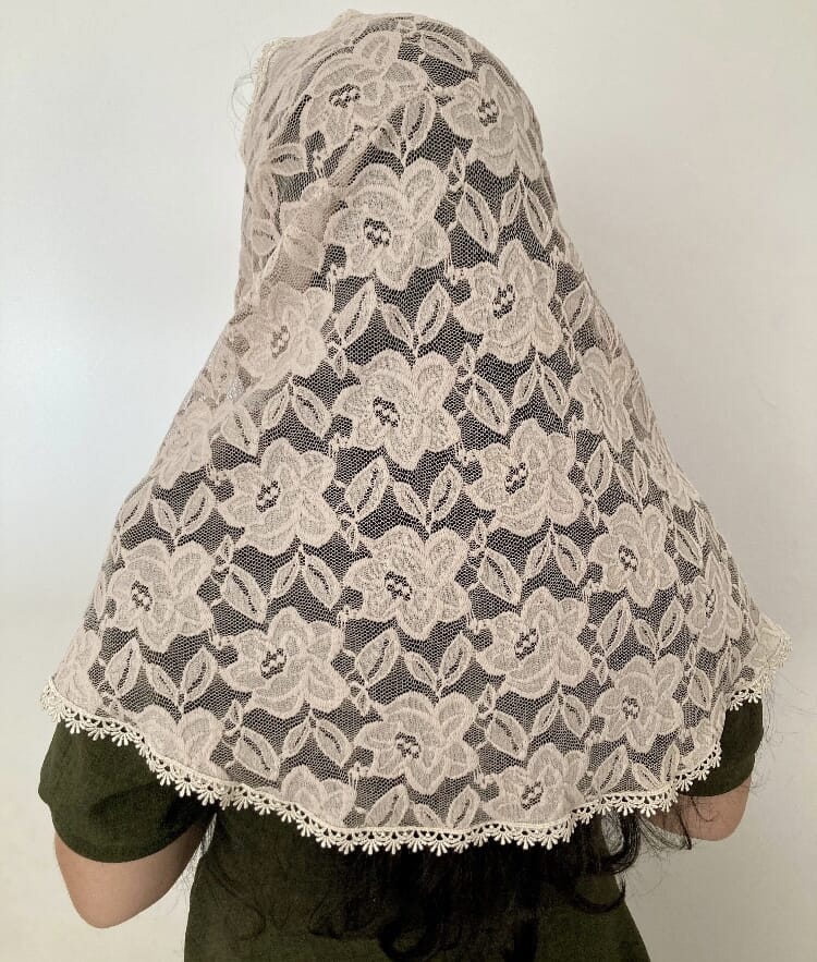 Véu Bege Santa Hildegarda, indicado para mulheres casadas.